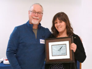 RBA President Liz Magnanti presenting the 2020 Little Gull award to Tom Nash and Sheryl Gracewski